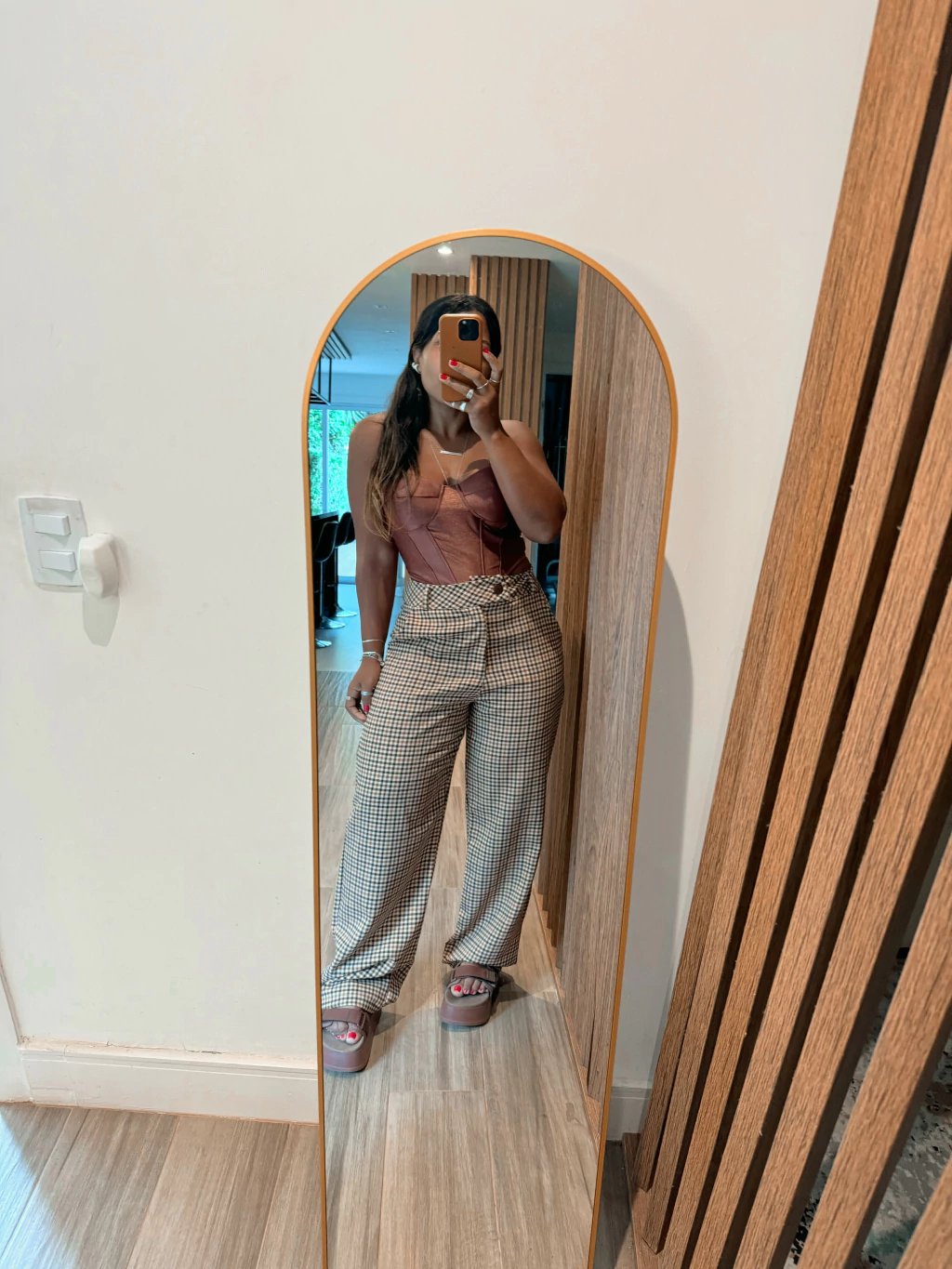 Como usar: Combine a Calça xadrez Vick com blusas neutras para um visual elegante ou com camisetas básicas para um look mais despojado. Aposte em sapatos de salto para eventos formais ou tênis para uma produção casual e moderna.