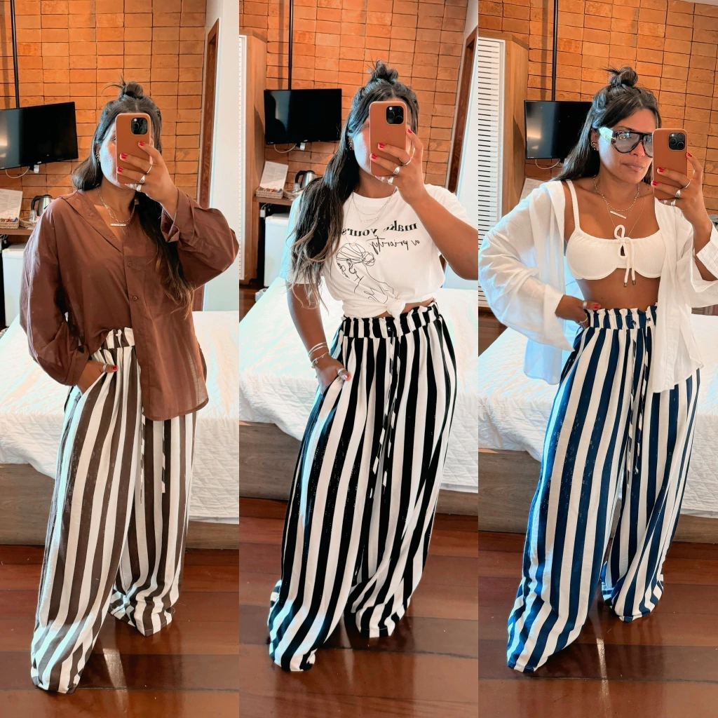 A Pantalona Listra é a peça-chave para quem busca elegância aliada ao conforto. Confeccionada com tecido leve e toque suave, ela apresenta um design com listras clássicas que nunca saem de moda, garantindo um visual moderno e versátil.