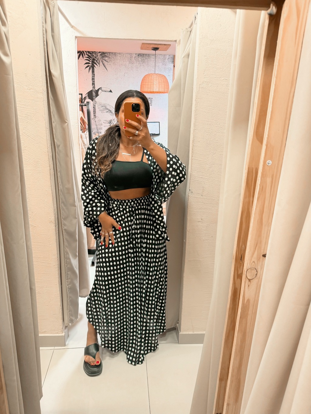 Combine a Saia Nicoly com blusas justas para equilibrar o volume e sandálias para um look elegante e descontraído. Ideal para passeios, trabalho ou eventos sociais, ela é a peça coringa que transforma qualquer produção.
